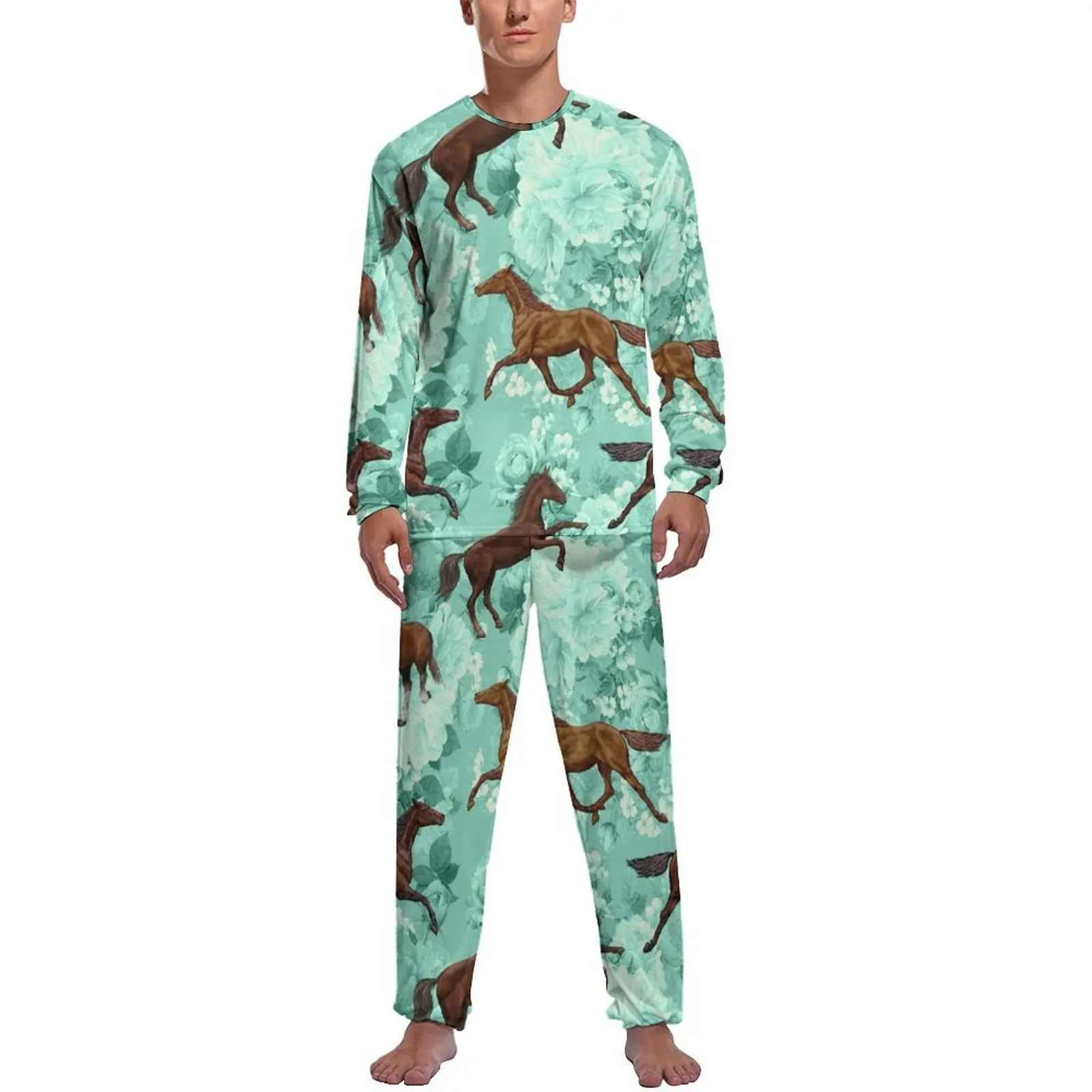 Colorful Running Horse Pajamas Long Sleeve Cute Animal Print 2 Piece Aesthetic Pajamas Set Autumn Male Graphic Cute Nightwear